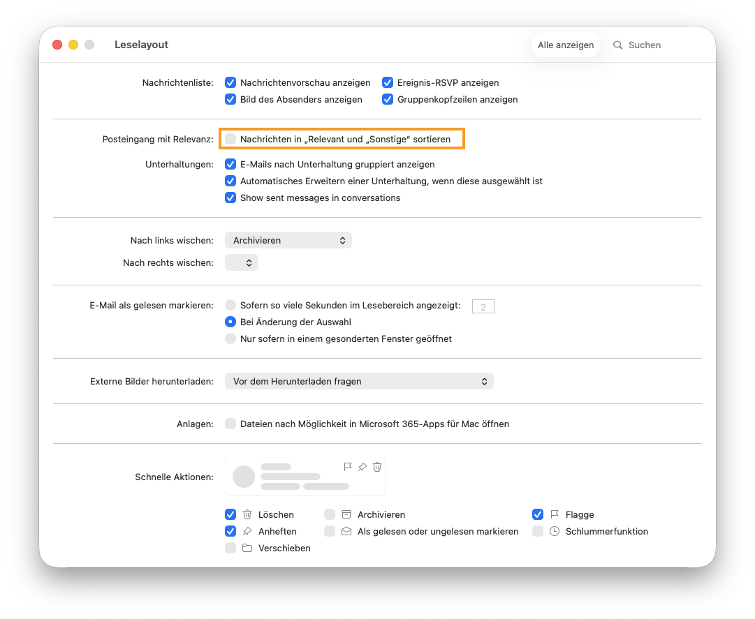 3. Deaktiviere die Option Nachrichten in „Relevant“ und „Sonstiges“ sortieren.
