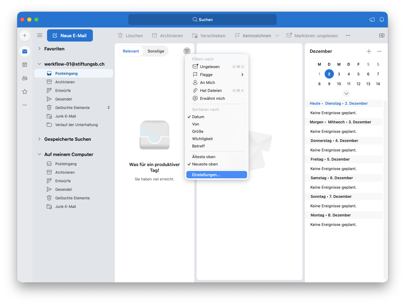 2. Der Account wurde hinzugefügt. Jetzt deaktivieren wir den Posteingang nach Relevanz.