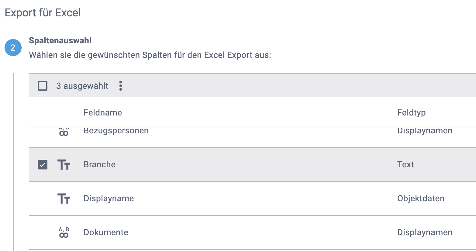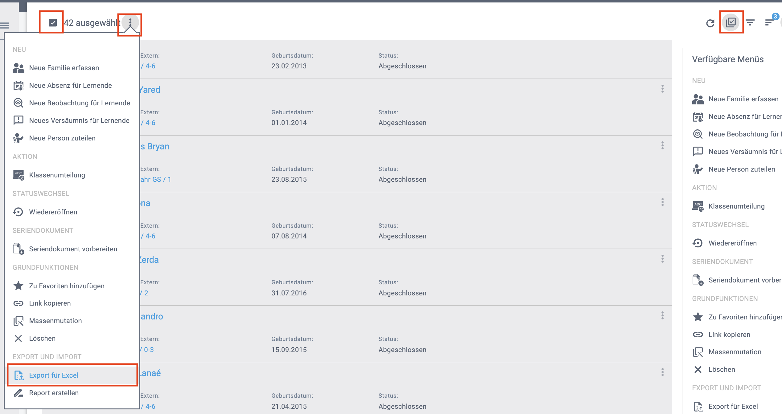 3 Punkte-Menü: Export für Excel |