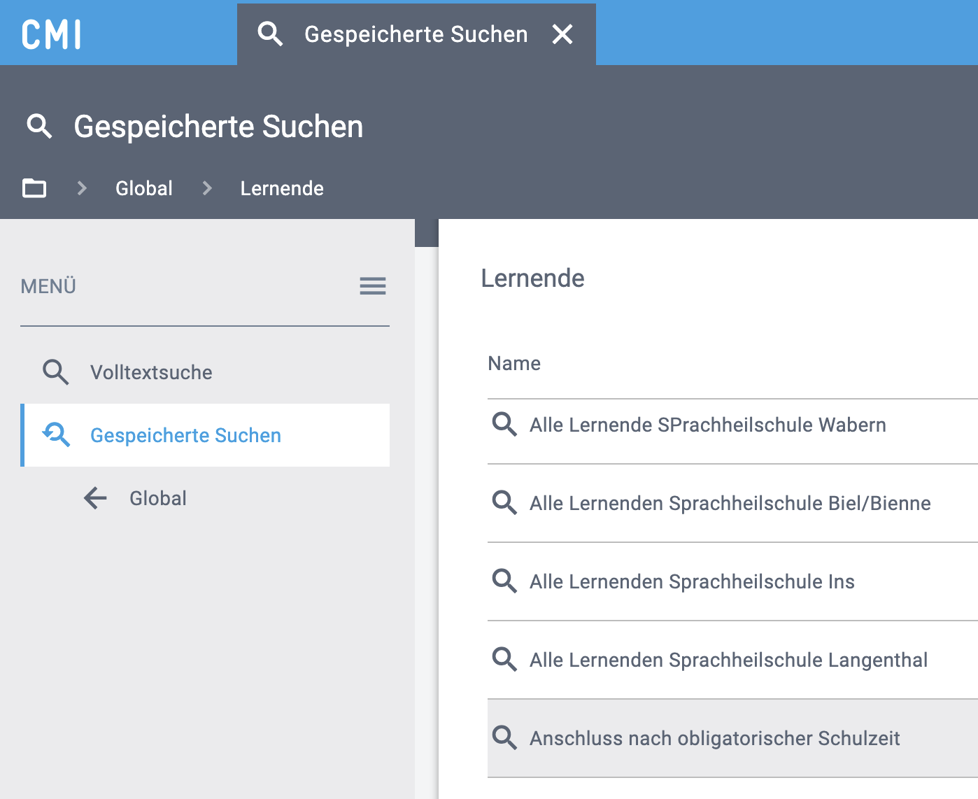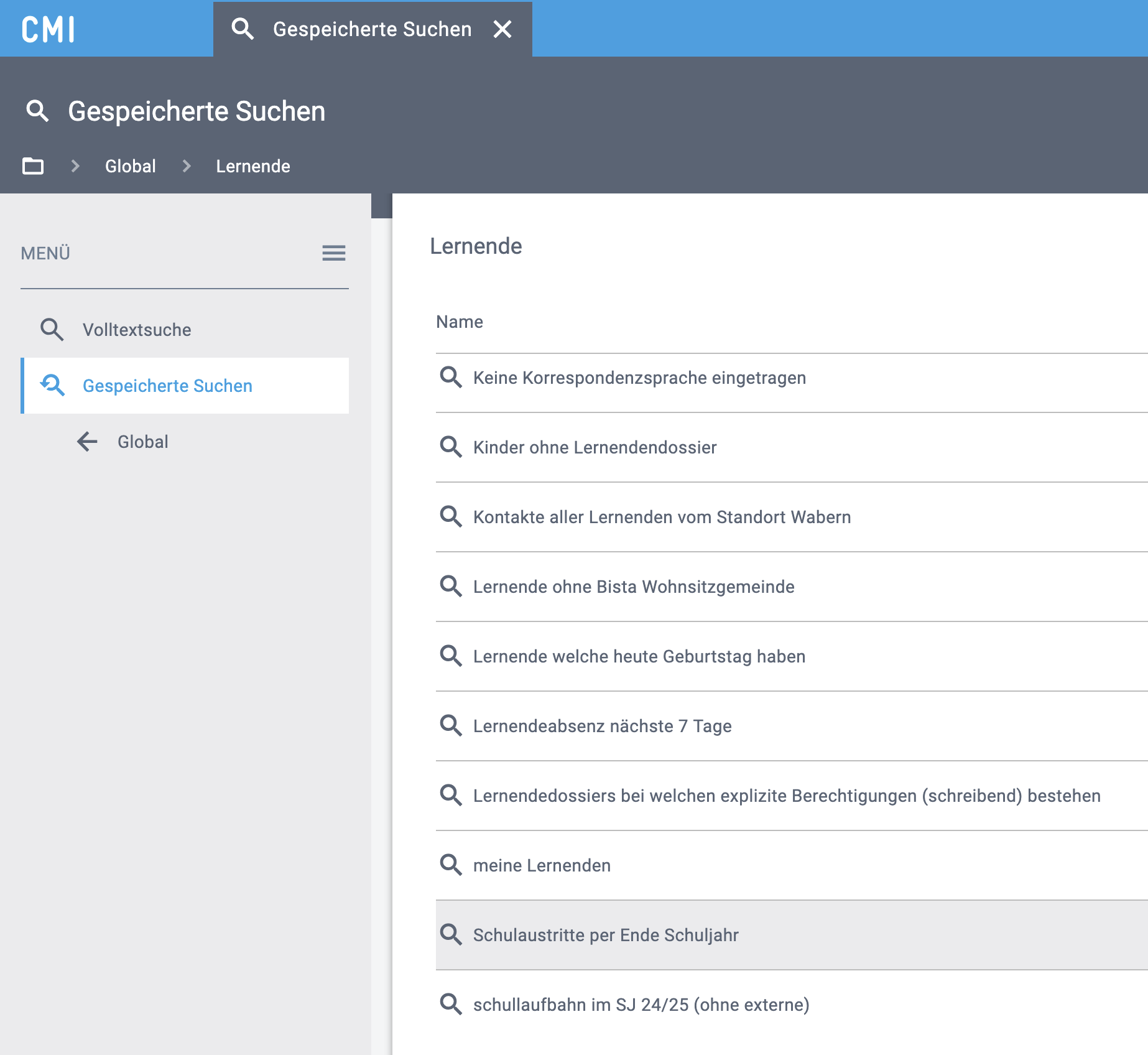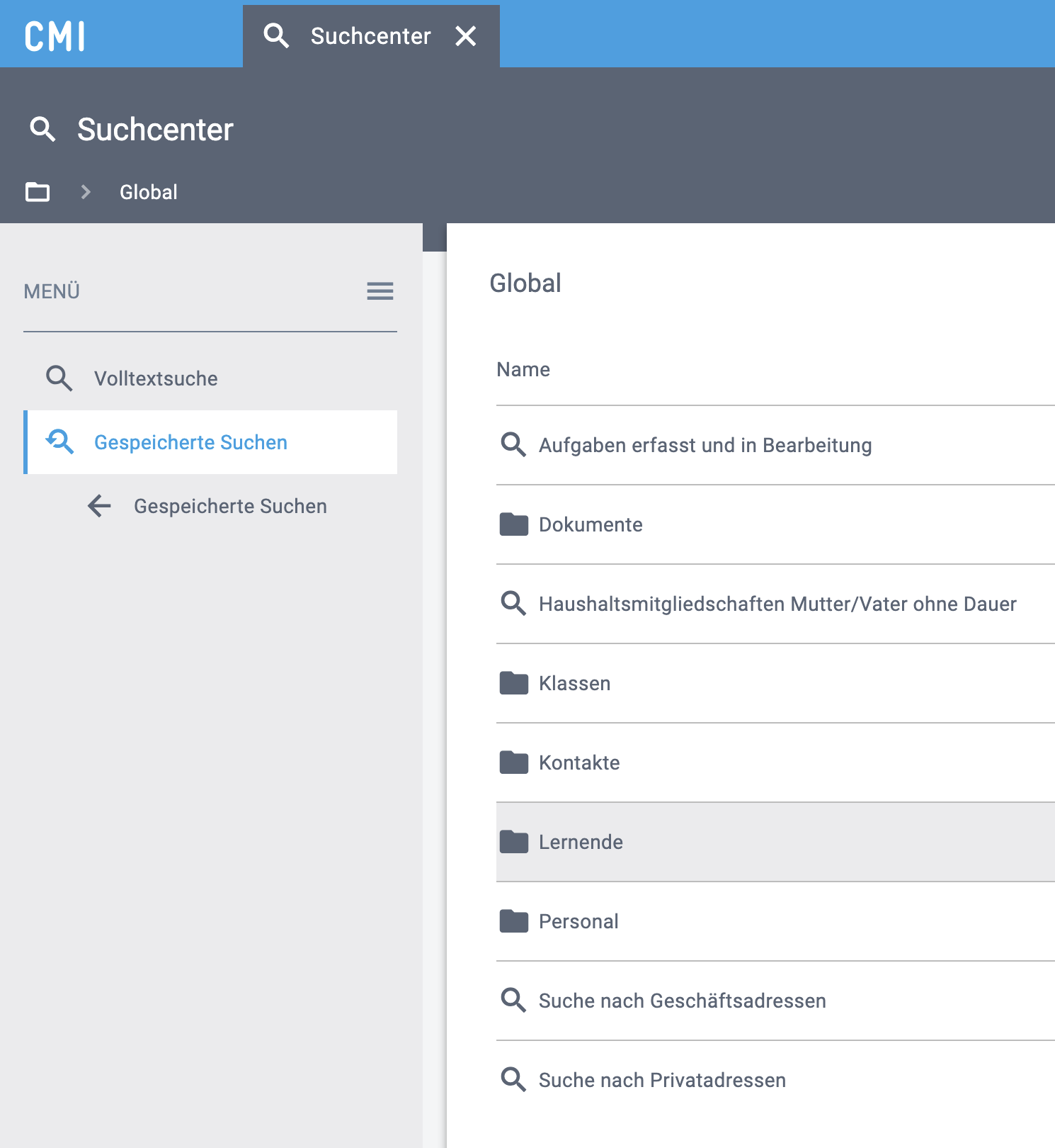 | Suchcenter > Gespeicherte Suchen > Global > Lernende | |