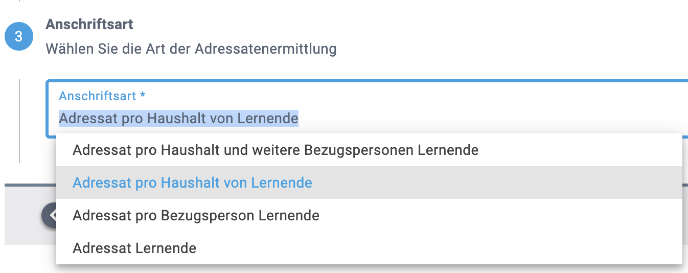 1. Nun kannst du nach Lernenden suchen, welche den Serienbrief erhalten sollen oder deren Eltern den Serienbrief erhalten sollen. Du kannst einzelne Lernende auswählen aus einer Liste oder auch eine ganze Klasse.