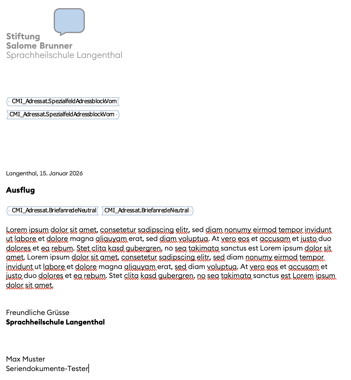 Du kannst in CMI aus einer Liste Personen auswählen, die ein Seriendokument erhalten sollen. Adressdaten und weitere Daten, welche in CMI hinterlegt sind können dann direkt in das Dokument eingebunden werden.