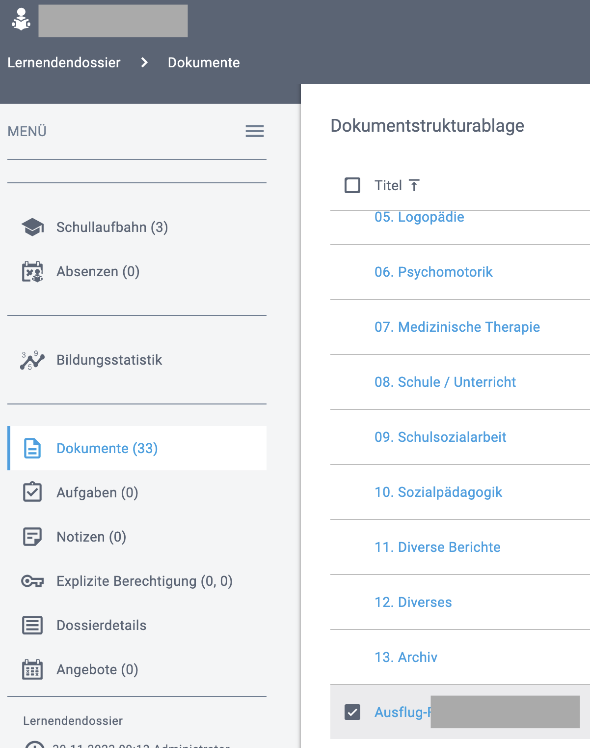 16. Wenn du nun im Lernendendossier der ausgewählten Schüler:innen zu den Dokumenten gehst, siehst du dort die jeweils einzelnen Dokumente. |