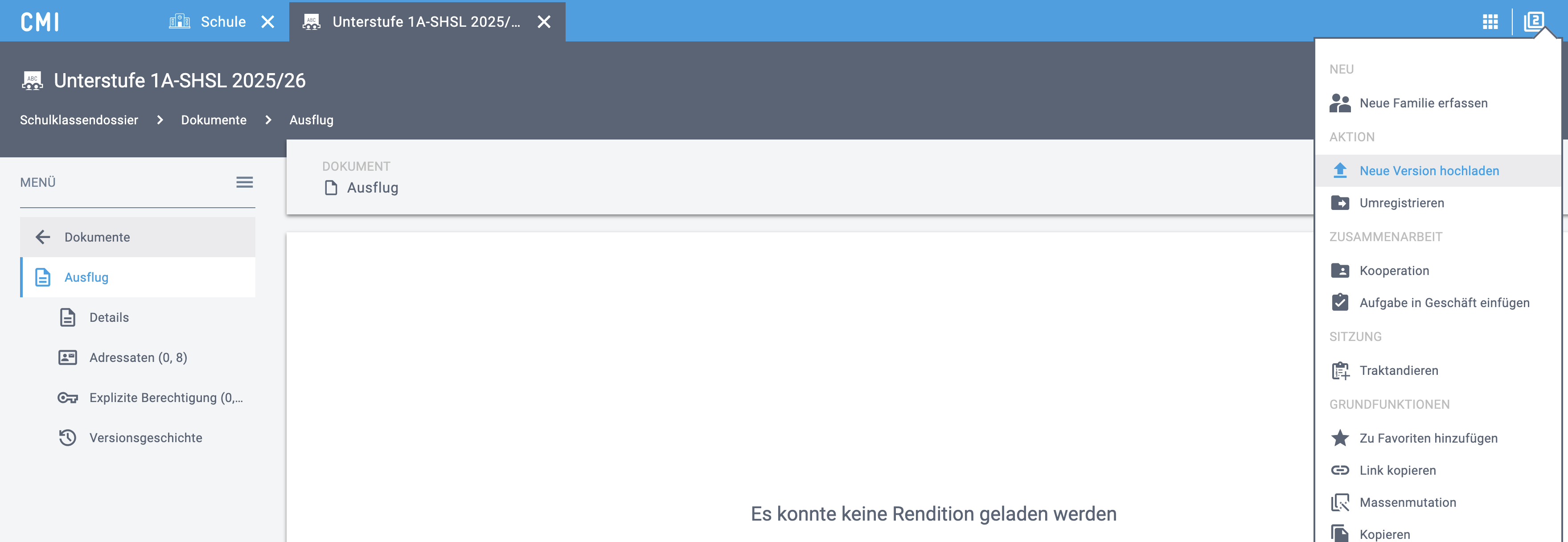 | 7. Wähle den gewünschten Ort, wo das Hauptdokument abgelegt werden soll. Das kann z. B. die Schulklasse sein. | |